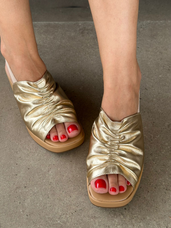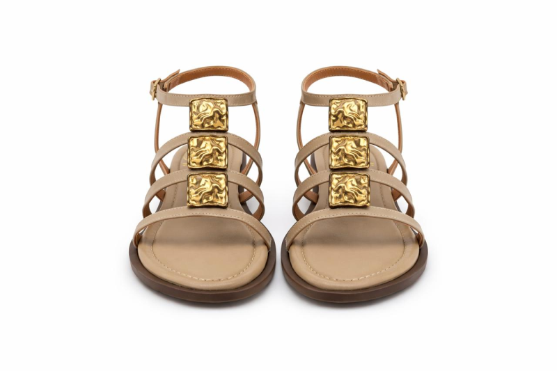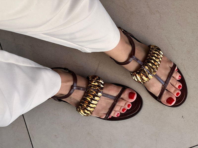 Sandalia Rasteira Tiras Fendi Pçs Ouro