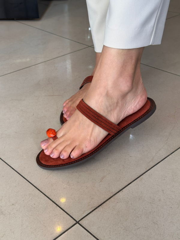 Rasteira De Dedo Adorno Em Pedra Camurça
