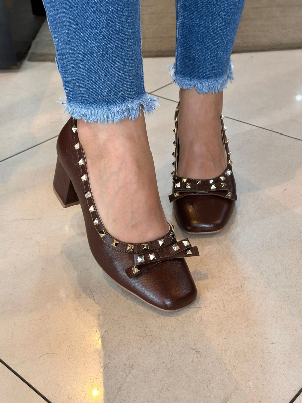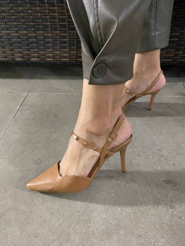 Scarpin Slim Bag Couro Nude Taxas Salto