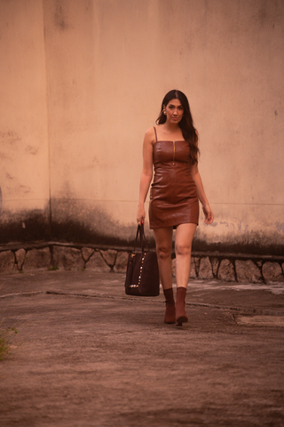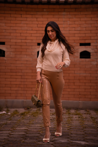 Scarpin Slim Bag Couro Nude Taxas Salto