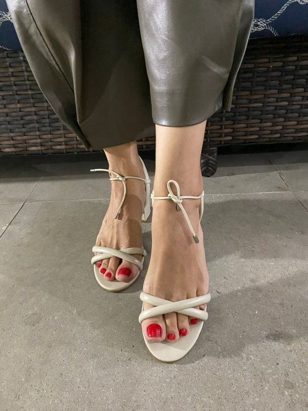 Sandália Couro Nude Salto Bloco Médio